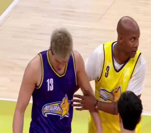 而郭艾倫之所以在聚星名人賽上較勁,我覺得還有另外一個原因,那就是對面站著的是前NBA和CBA雙料球星馬布里。